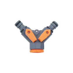 Двойной распределитель с клапанами для шланга 1/2"-3/4". Применяется для быстрого и надежного соединения шлангов с трубой или краном d=3/4". Позволяет распределить поток воды на 2 линии.